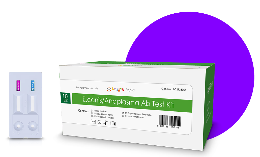 1. Inmunocromatografía de flujo lateral (Test rápidos): Detecta anticuerpos contra Ehrlichia canis.