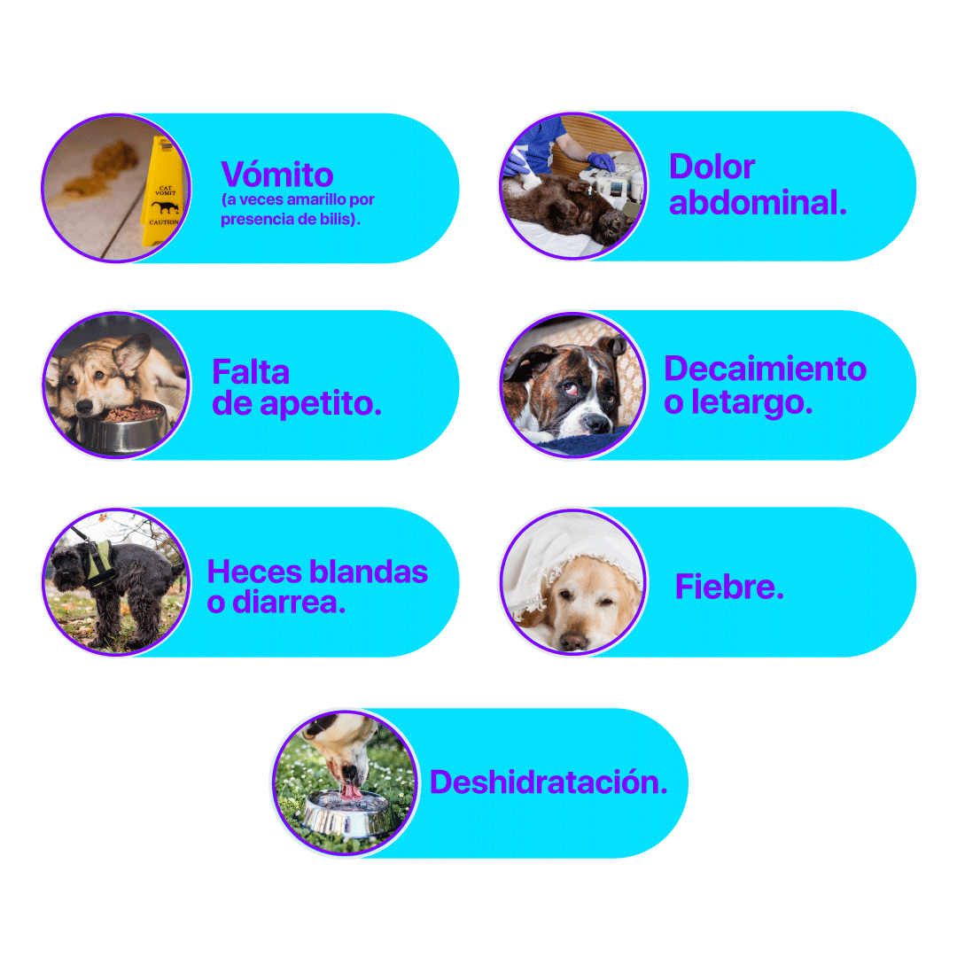 Si notas varios de estos síntomas al mismo tiempo, especialmente vómitos persistentes y dolor abdominal, es importante consultar al veterinario lo antes posible.